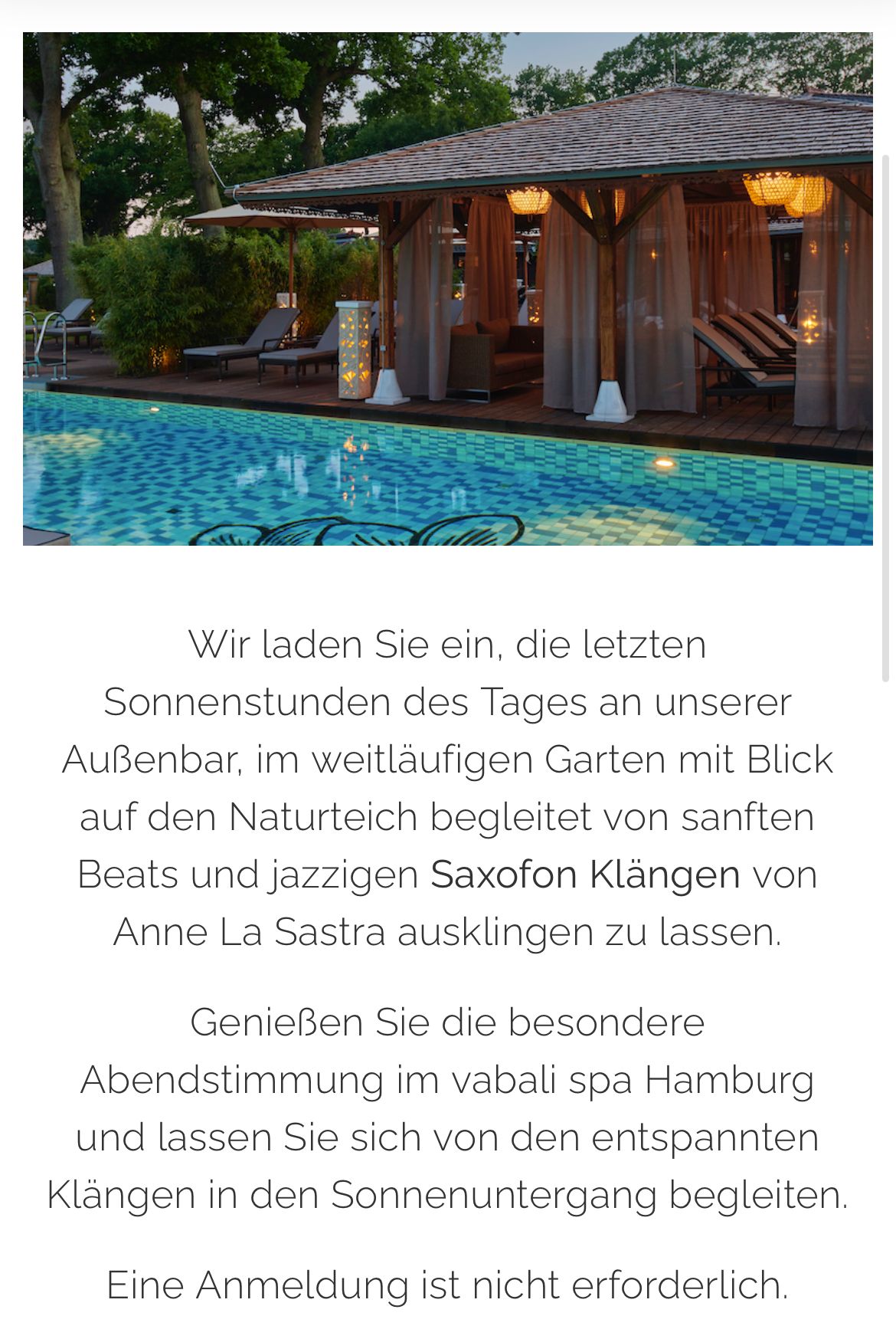 Tag: Dachterrasse, David Lloyd Meridian Spa, DJ plus Sax, Hamburg Alstertal, Radio Lübeck, Sommerstimmung Am letzten