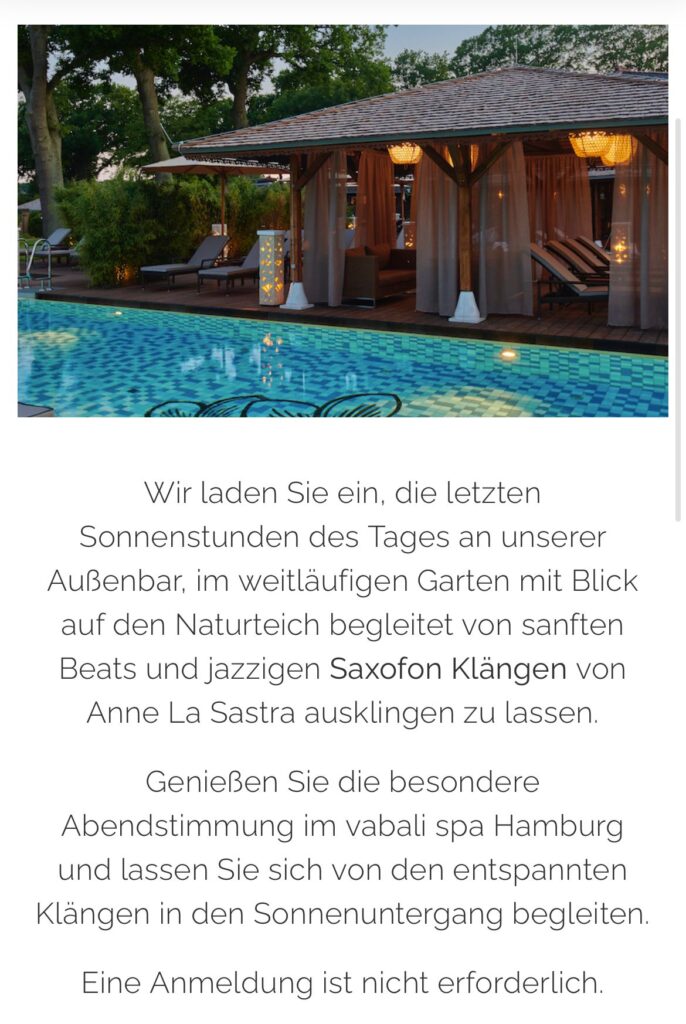 Tag: Dachterrasse, David Lloyd Meridian Spa, DJ plus Sax, Hamburg Alstertal, Radio Lübeck, Sommerstimmung Am letzten Wochenende im Juni hat Anne im David Lloyd Maridian Spa in Hamburg Alstertal auf der Dachterrasse für loungige Sommerstimmung gesorgt. Vorab hat sie in einem Gespräch mit dem Radio Lübeck erzählt, warum sie sich genau auf diesem Auftritt so sehr gefreut hat. Ihr habt den […]