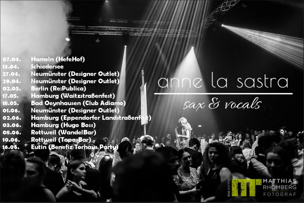 Wie ihr schon erfahren habt, habe ich vorletztes Wochenende in Hameln in einem echt schicken Club mit DJ Aleksey (bekannt durch seinen Hit „Millennium“) gespielt. Als Live-Saxophonistin mit Deejay durfte ich hier für beste Stimmung sorgen – und die kam tatsächlich nicht zu kurz! Hier könnt ihr einen kleinen Eindruck gewinnen: Anne La Sastra – live mit DJ Aleksey Falls ihr auch wieder Lust auf […]
